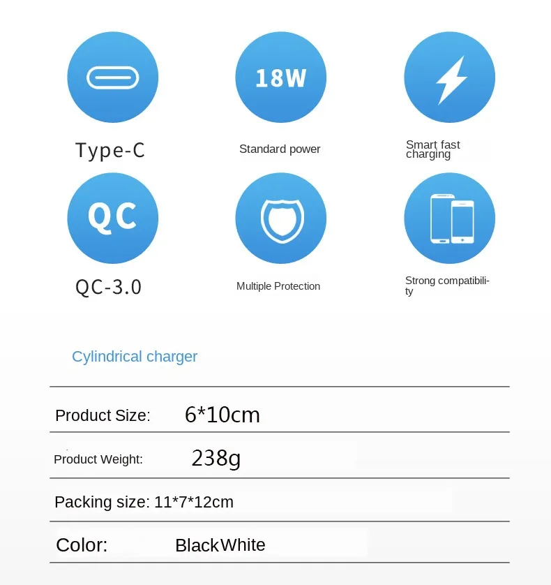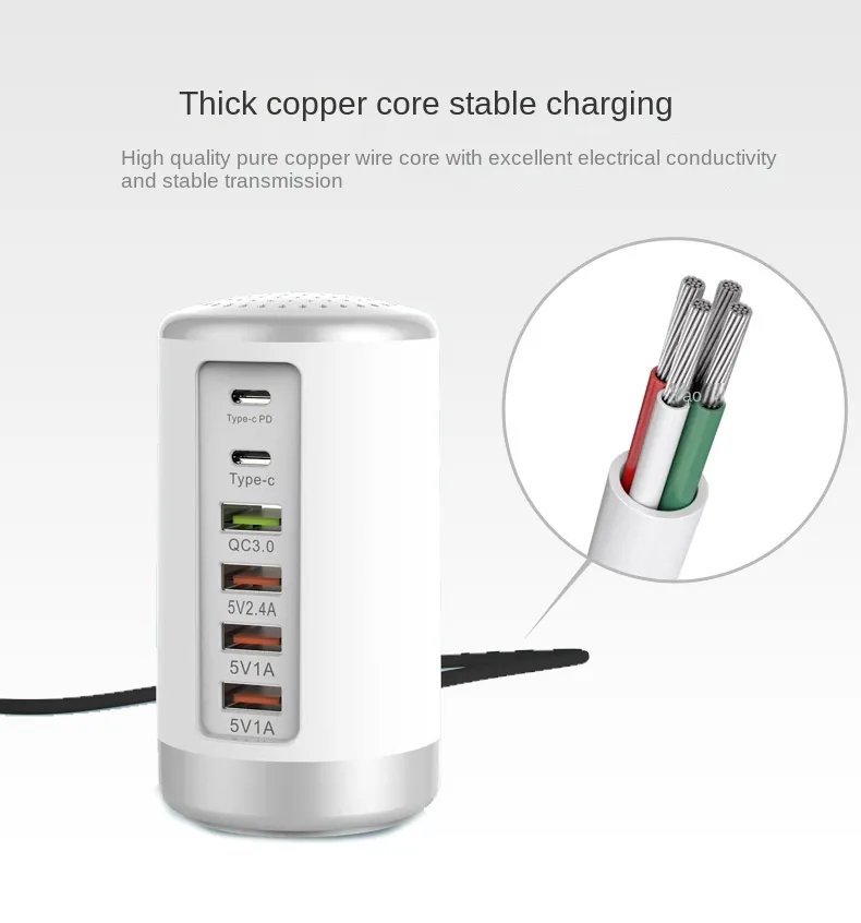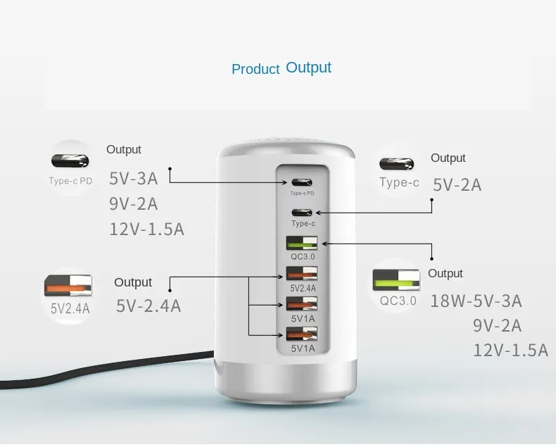 Introducing the ultimate power solution for your devices! Our multi-functional charger is not just a charger; it's a safety powerhouse with intelligent control system, and top-notch protection features. Made of ABS+PC material with fireproof function, it ensures safety and environmental friendliness.